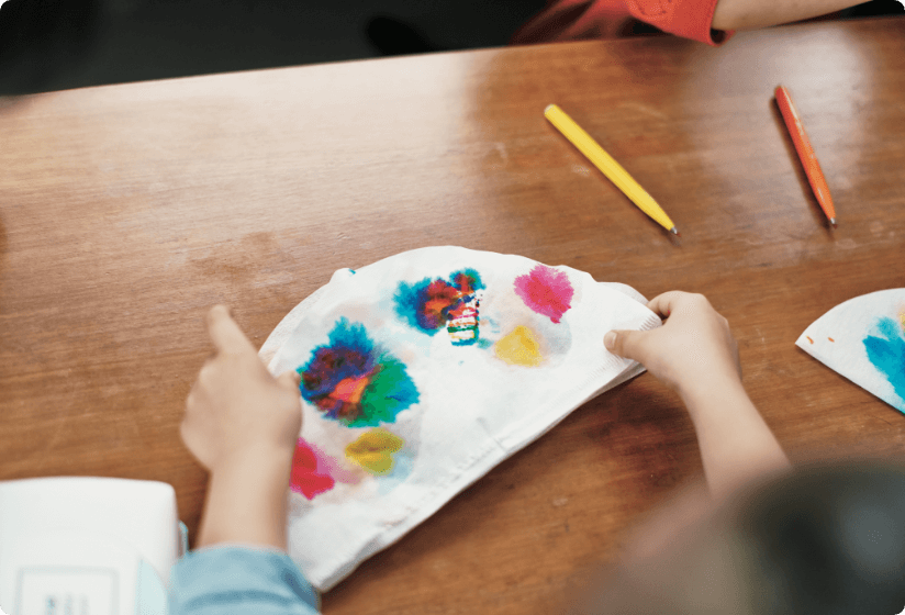 コーヒーフィルターに水性ペンで絵を描き、霧吹きで水をかけると……? 切り開くとにじんだ色が移り、カラフルなチョウチョに!乾いたら