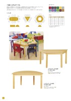 システムテーブル長方形H=40cm 白木BK11221670■サイズ:120×60 高さ40cm ■材質:ぶな ■ベカ社/ドイツ(ドイツ製)システムテーブル正方形H=40cm 白木BK11210670■サイズ:60×60 高さ40cm ■材質:ぶな ■ベカ社/ドイツ(ドイツ製)システムテーブル円形Ø100 H=40cm 白木BK11250670■サイズ:直径100cm 高さ40cm ■材質:ぶな ■ベカ社/ドイツ(ドイツ製)プレイテーブルセンターホール付テーブルの中央に収納スペースのあるプレイテーブル。遊具が広がりやすいブロック遊びの空間に最適です。BK12332072■サイズ:直径110cm 高さ45cm ■材質:ぶな、高密度集成材 ■ベカ社/ドイツ(ドイツ製)P155┃ コンストラクションみよし保育園(群馬県邑楽郡)核家族化が進み大勢でテーブルを囲んで食事をする機会も少なくなっている現代社会で、ひとつのテーブルを囲み、話をしながら食事をすることは、食べることの喜びや楽しさ、マナーを学ぶ大切な時間になります。そんな思いのもと、みよし保育園では、ドイツ・ベカ社のイスと、移動しやすいようにキャスターをつけてカスタマイズしたテーブルを導入しました。丈夫で安定感があり、美しい木目は食卓に相応しい清潔感を与えます。豊かなランチルームは、味覚だけでなく五感のすべてを使って、食べることの大切さを子どもたちに気付かせてくれます。実績83メリーノ社プレイファニチャーカーペットソファ午睡コーナープレイウォールベカ社ライブラリーインテリア