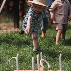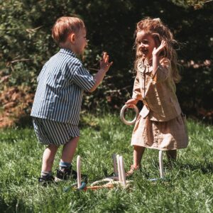くり返し遊ぶなかで、わっかを投げる力加減や距離を把握する空間認知力などを洗練させ、支柱に入ったらOK!という遊び方から得点を争うゲーム形式まで、成長に応じてあそびをステップアップさせながら長く楽しめます。