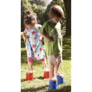 丈夫なプラスチック製のカップを逆さまにして、両足を乗せて歩く道具です。