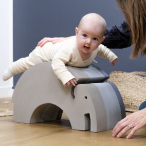 本国デンマークでもシリーズ人気No.1のゾウのモチーフは、背中をハイハイや歩いて登ったり、上からジャンプしたり、ひっくり返してバランス遊びをしたりと交差運動やバランス感覚を育みます。