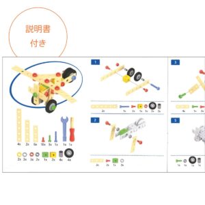 徐々に各パーツの特性や役割を理解できてくると、付属の説明書を見ながら手順に沿って作品がつくれるようになります。