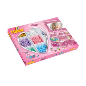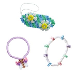 デンマーク発のアイロンビーズ“ハマビーズ”のシリーズから、ブレスレット・ヘアピン・ネックレスなどのアクセサリーが作れるセットです。