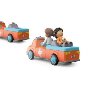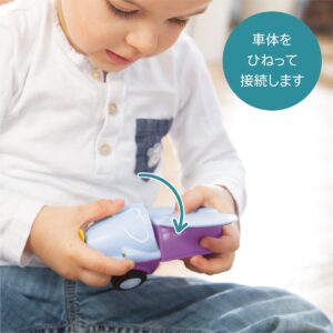 どのクルマも力を加えると自然に前進し、お人形とセット。音やライトの演出が付いているものもあり、クルマ遊びから組み立てやごっこ遊びまで、あそびの幅を広げてくれます。