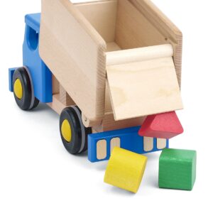 11カ月~2 歳前後には、本物のトラックのようににみえるサイズ。自分だけの世界に入りこんで、夢中で遊べます。荷台の扉をくるりと回転させると、積み木を落ちないようにしたり、逆にザザーと外に落としたりできるしかけも。
