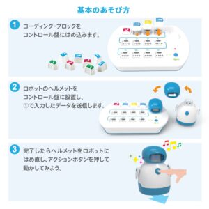 最大の特徴は、自分が考えたコード(指示)をコントロール盤上で可視化できること。ロボットを動かした後もコントロール盤にブロックが残っているので、コード(指示)で間違ったところを自分自身で発見して修正し、再度挑戦。試行錯誤し頭と手を使って実体験から納得できます。