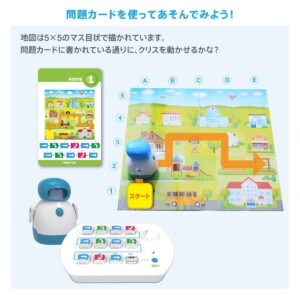 そのほか、カードを使わずにコーディング・ブロックをランダムに置きクリスの動きを観察したり、わざとクリスの動きが地図からはずれるように置いたり。自由な発想でオリジナルの遊び方を考え、多様にあそびを発展できます。