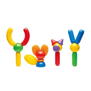 STICK-O(スティック・オー)は、ひとりでもできることが増えたなと感じる1歳半ごろにぴったりの「マグ・フォーマー」の姉妹ブランドのブロックです。小さな手でも握りやすく、磁石で瞬時にくっつく。できた!のくり返しが満足感と達成感を生み出します。あそびを通して日常生活の動作を獲得する時期に、子どものあそびが変化するプロセスを、大人も一緒に楽しんでください。はじめて遊ぶお子さまにおすすめの、基本的なかたちがそろう30ピース入りベーシックセットは、お城やすべり台、球体ピースを使い動物やお人形などをつくって楽しめます。