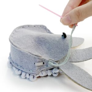 付属しているのはプラスチックの針で、先端が丸い形状になっているので、フェルトの穴に通しやすいように工夫がされています。