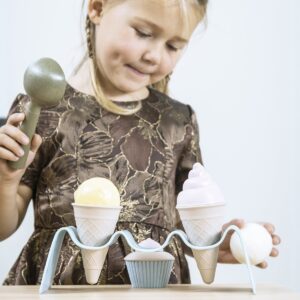 アイス屋さんのように、スクープでアイスをすくってオリジナルのアイスクリームをつくってごっこ遊びが楽しめます。