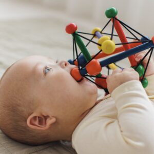 はじめて触る道具は赤ちゃんの様子を見ながら、さまざまな素材やしかけがあるあそび道具がおすすめです。