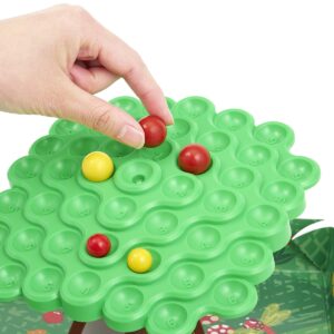 ぐらぐら揺れる木の上にリンゴを順番に乗せて、落とさなかったら勝ちのゲームです。