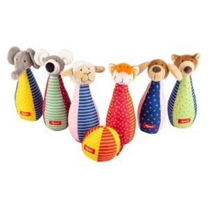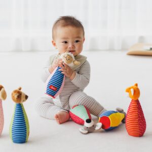 幼児期に向け、ボウリングとして全身を動かす遊びや一緒におままごとをしてくれるぬいぐるみにもなります。