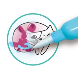 付属のペンに水を入れて台紙の上をなぞると、カラフルな絵がみるみる現れる不思議なぬりえです。