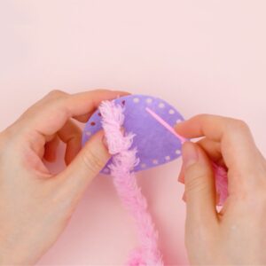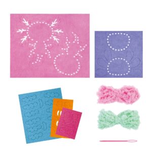 下穴のあいたフェルトにふわふわの毛糸をわたすだけで、ウーパールーパーのキーホルダーが完成!今話題のバッグチャームのような、愛らしい質感とボリュームの作品が簡単に作れます。工程はプラスチックの安全な針を使った、ひもとおし感覚の進め方で、はじめてのソーイング体験にも。ミントグリーンの全身デザインと、ピンクのお顔デザインの2つが完成するので、1つはお友だちや家族にプレゼントしてお揃いでつけることもできます。