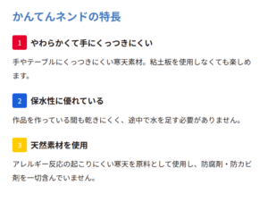 乾きにくく、手でこねると柔らかくなり、手やテーブルにもくっつきにくいのが特徴。