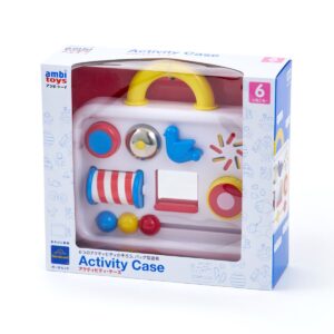 真似っこと手を動かすのが楽しい6ヶ月頃に、多様な手遊びが楽しめるカバン型のアクティビティトーイです。