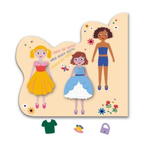 裏面は着せ替え遊びが楽しめるシールブックと、まちがい探しや迷路が楽しめるゲーム付きです。