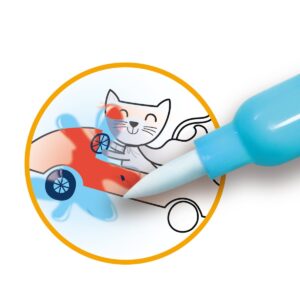 付属のペンに水を入れて台紙の上をなぞると、カラフルな絵がみるみる現れる不思議なぬりえです。