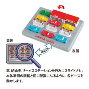 ガソリンスタンドをひっくり返せばいつでもどこからでもスタートできるので、移動の多いレジャーの季節はもちろん、外出先にもおすすめのスライドパズルです。