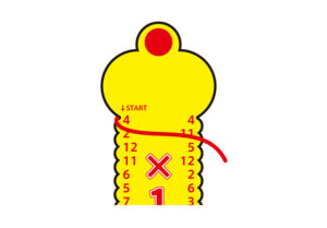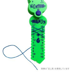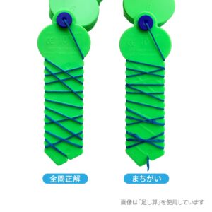 ④計算を終えたらバーを裏返して、さあ答え合わせ!裏返すと線が書いてあり、巻いた糸がその線に重なっていれば正解です
