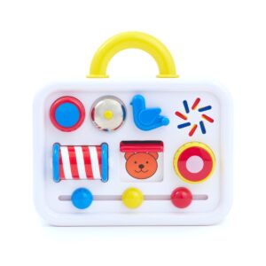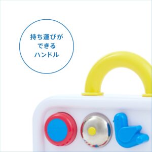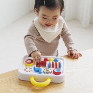 真似っこと手を動かすのが楽しい6ヶ月頃に、多様な手遊びが楽しめるカバン型のアクティビティトーイです。