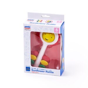 ひまわりのにっこり笑顔を回して「いないいないばあ」遊びや、大人が振ってシャカシャカと赤ちゃんをあやす道具にもぴったり。