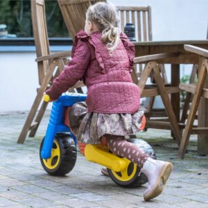 自分の蹴り出す力でスピードを出し、風を感じることのできる乗用遊具は、体をコントロールし、力も付いてくる3歳頃にぴったり。デンマークでも長年愛されている頑丈さで、お子様の力いっぱい遊びたい欲求に応え続けてくれます。
