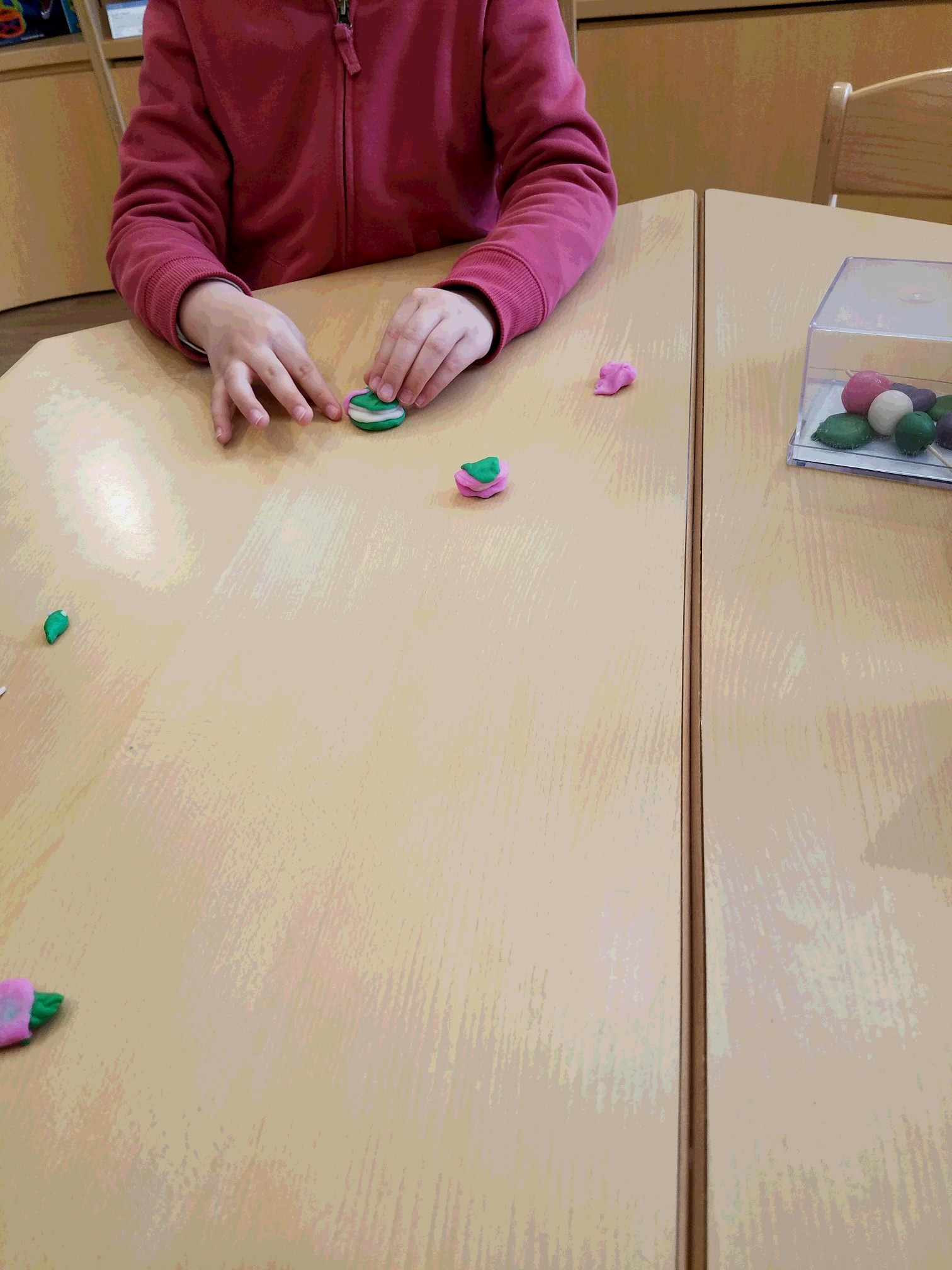 4月1日、2日に「かんてんねんどで3色お団子作り」を開催しました♪