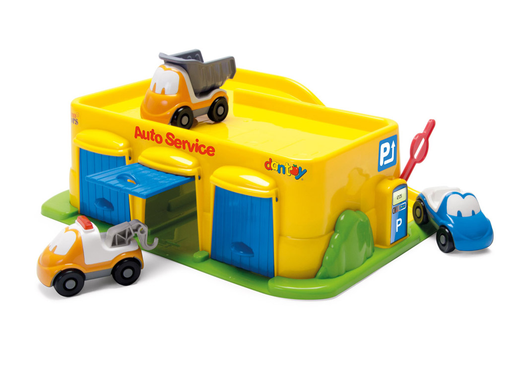 、繰り返し遊びが楽しめます。スロープ付きのガレージに車3台が付いたセッ
