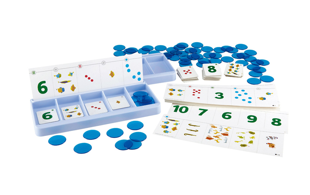 量を数えたり、数字に興味が出てきた頃に。カードやチップを使って、難しく