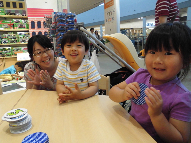 早く上がったおともだちにはカード係をお願いしました。「カードください」「はいどうぞ!」