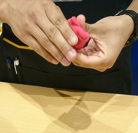 手のひらを使って、少し抑えながらネンドを伸ばしてみましょう。