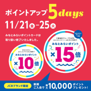 (みなとみらいポイントカード一体型)のご利用で15倍、