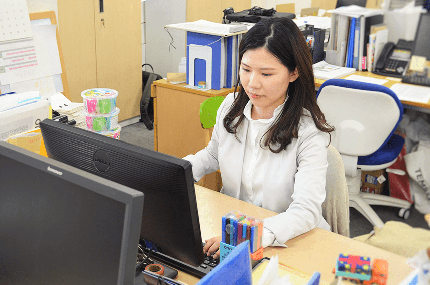 商品や環境作りを通して子どもの笑顔に繋げられるよう、商品やメーカーに一番近い存在である商品部として、1日でも早く先輩方のように様々な視野から物事を考えられ、責任ある仕事もこなせるようになりたいです。 入社前から商品部を志望していましたが、想像以上に様々なスキルが必要だと日々感じます。英語力はもちろんですが、コミュニケーション力、調整力、課題解決力、提案力、表現力、スケジュール管理能力、マルチタスク処理能力…、複雑な業務で成り立つ仕事柄、多様なスキルが求められるので、先輩方の仕事ぶりを見ながら、少しずつ吸収していきたいです。また、一般消費者向けのあそび道具をメインに取り扱う担当から、主に遊環境事業部が扱う大型遊具を担当する「コンパンプレイスケープ業務」担当に着任し、今まであまり触れたことのない商材を取扱うこととなりました。 まだまだ知識不足を実感しますが、経験を積みながら、社内外から信頼される社会人になれるよう精進します。