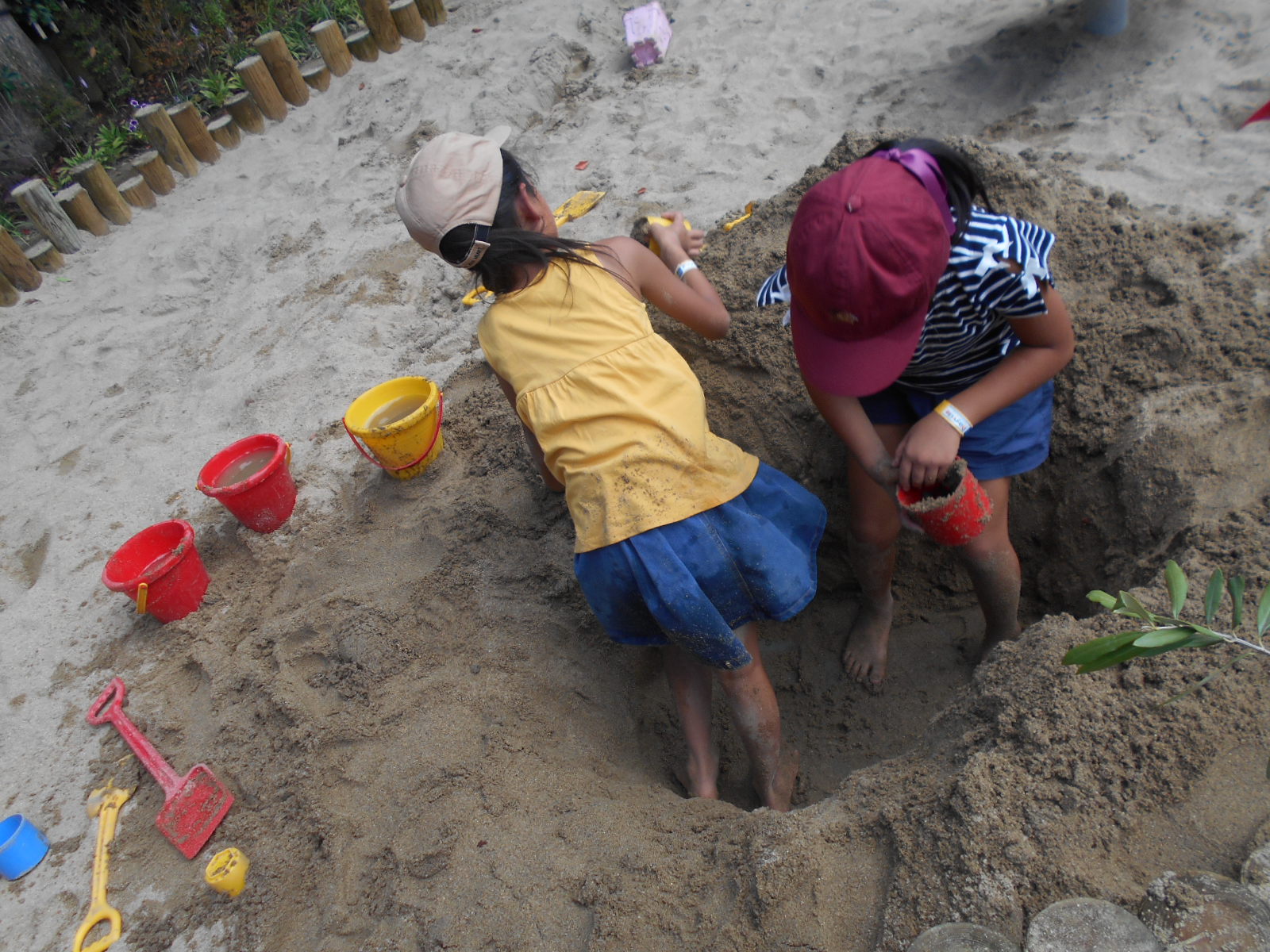 皆さんこんにちは! 台風も明け、過ごしやすい夏のお天気がきましたね! プレイリーダーのちはるお姉さんです! 本日はプレイヴィル大阪城公園の屋外コーナーの お砂場をご紹介させて頂きます!! お姉ちゃんたちの手にかかれば、 こんなに大きくて深い落とし穴も完成します! 大人も入れる大きさです! また、井戸のポンプで水を汲み、お砂場に流していくこともできます! どれだけのお水が溜まるでしょうか?? そして小さなお子様のお砂場…続きを読む
