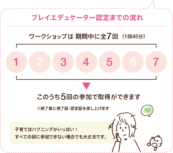 そんなとき、あたたかな子育て仲間と子どもの発達やあそびを学びあえたら、どんなに楽しいでしょう。そして、いつか誰かのために生かせる自分になれたら、毎日の子育てはもっと豊かなものに感じられることでしょう。