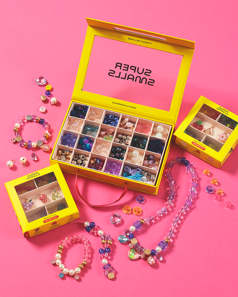ファッションの第一線で磨いた審美眼で、子どものために作るジュエリーブランド。自分のセンスで作りたい、を叶える宝石箱のようなキットです。中/ビーズ・ライブラリー7,480円、左右/ジュエル・ポップ3,520円