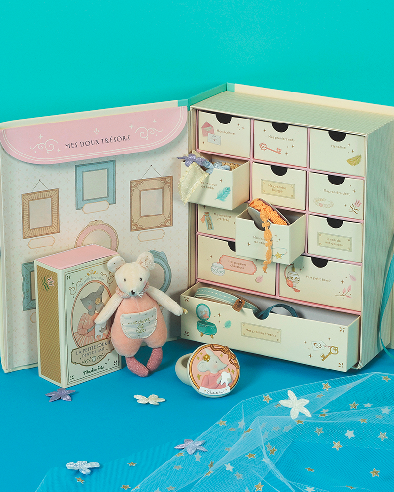 欧米には抜けた乳歯を「歯の妖精」が訪れて祝うという物語が。成長の喜びや記憶を大切に保管、子どもが巣立つ日に贈る習慣も素敵です。思い出ボックス6,380円、ねずみの乳歯入れ3,080円、乳歯入れBOX1,980円