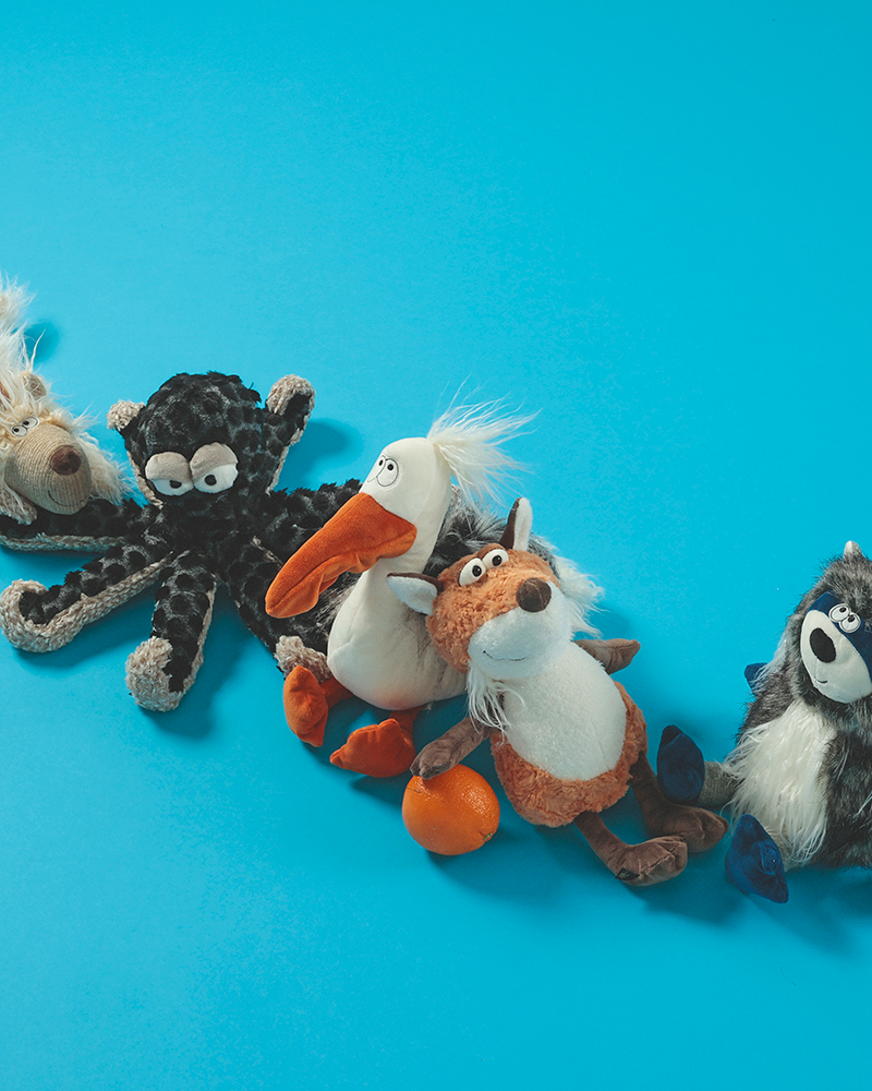 シギキッド社のぬいぐるみ・ビーストシリーズ。心のしみも洗い流してくれるあらいぐまのローラ・ランドリー(右端)や、凍った心もとろけさせるロスト・イン・ユー(左端)など今年も個性派がずらり。9,900円~