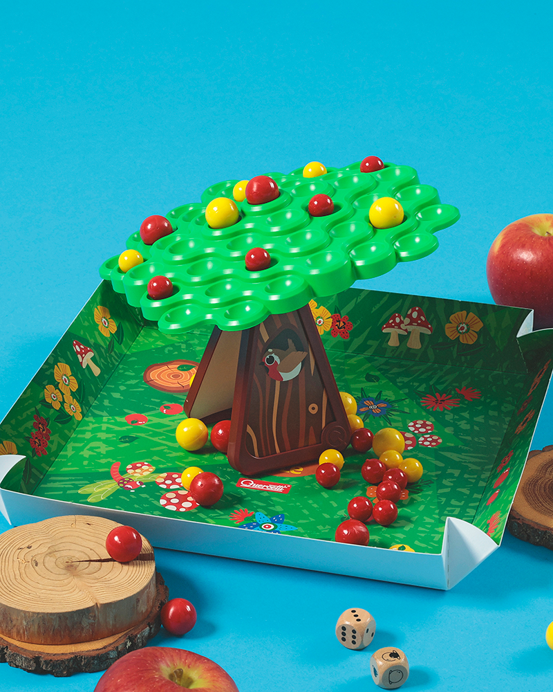 揺れるりんごの木の上に、サイコロの目に従ってリンゴを配置。イタリアのエンジニアが考えた、三世代が集まる席にもぴったりのファミリーゲーム。想像以上の傾きます!ドキドキ!アップル・バランスツリー3,300円