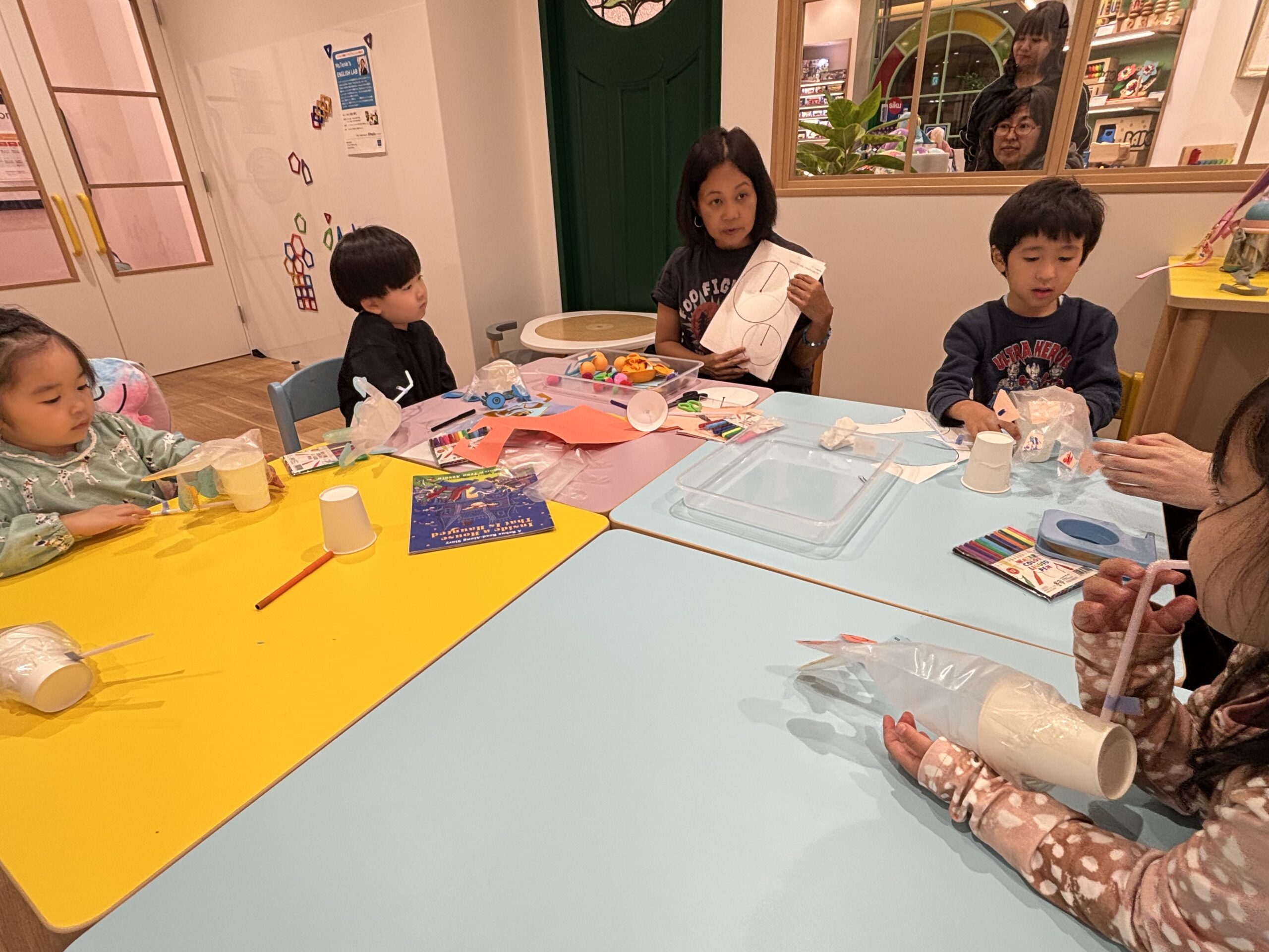 音が響く仕組みや遠近法など、ScienceやArtを英語で体験します。