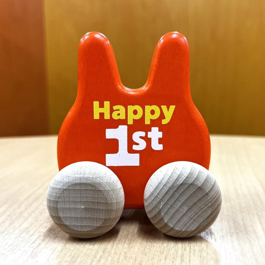 職人の手で丁寧に仕上げられた木の質感と、「Happy 1st」のロゴが入った特別な贈りものです。お出かけにも持っていきやすいサイズ感で、これからの毎日の楽しい思い出に。1歳の記念品として、ぜひ大切にお使いください。
