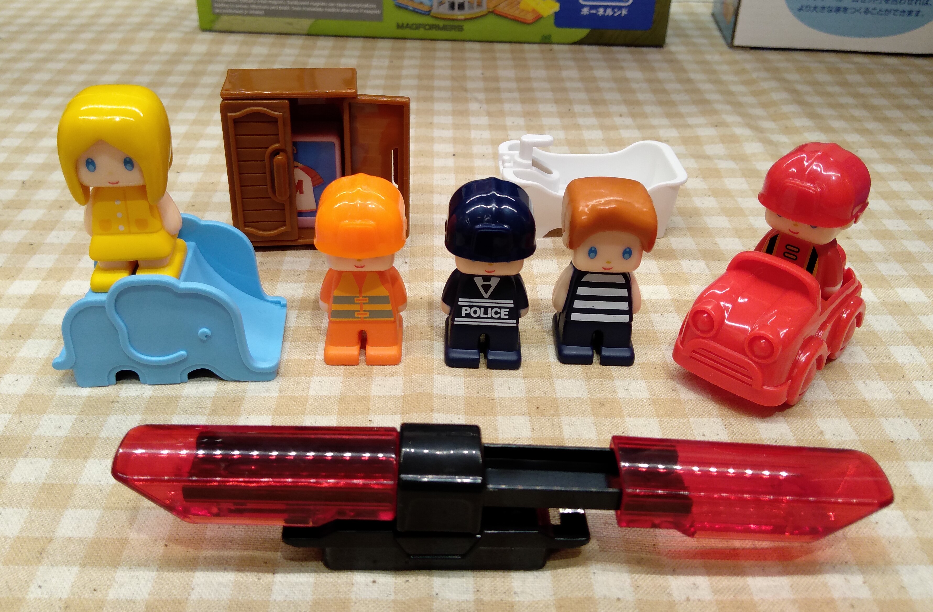 一方、「ポリス&レスキューセット 26ピース」は赤/青の配色になっており、