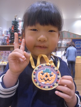 最終回は「モザイクシールを使ってかぼちゃのメダルづくり」を行いました。
