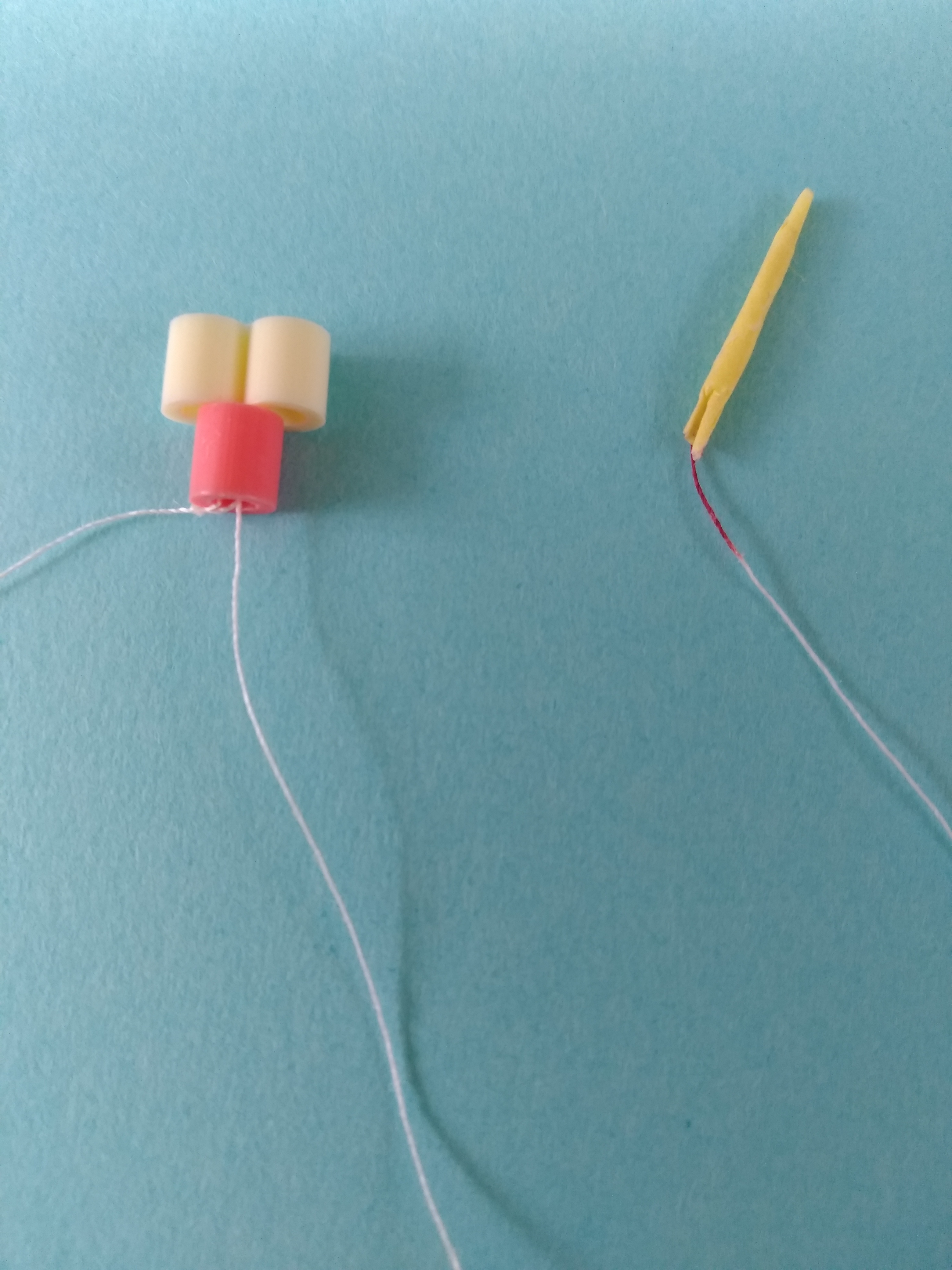 1.糸とハマビーズ一個を結び付けます。