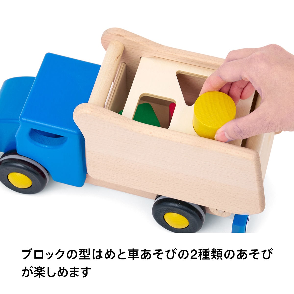 積み木ブロックのかたちあわせと、自分の世界に入り込んで「車あそび」を楽しめる、1 台2 役。