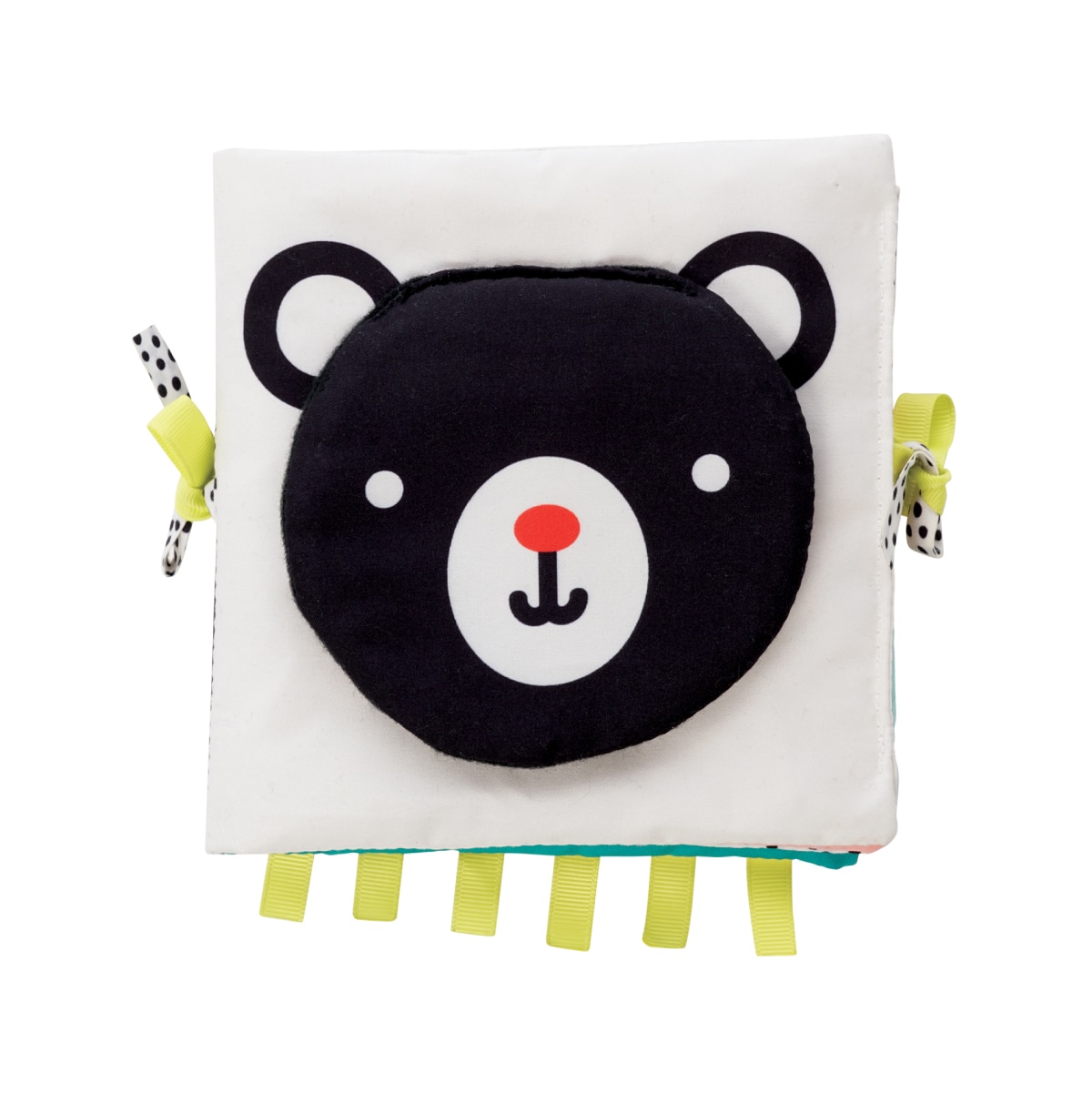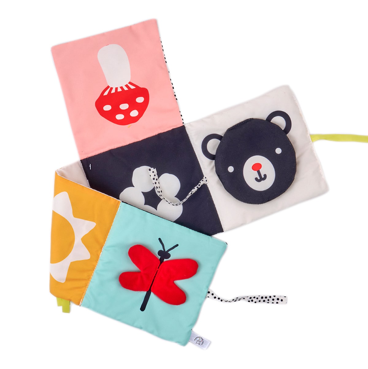表は白黒、裏はカラーのパターンが描かれていて、視覚の発達が進むにつれて、新しい「見える」を届けられる、リバーシブルの布絵本。
