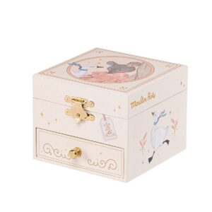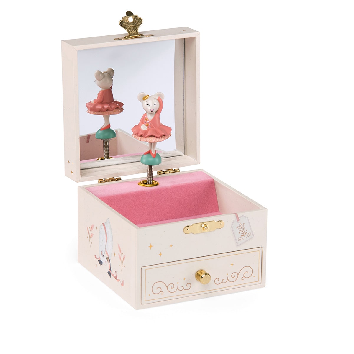 ふたを開けるとバレリーナのねずみが優雅にくるくると回りはじめ、やさしいメロディ(魔法使いの弟子)が流れ出す宝物入れ。