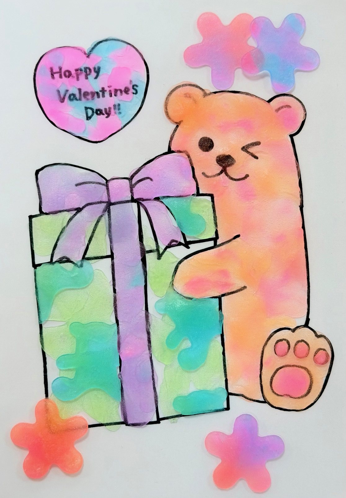 天然素材を使用した、防腐剤・防カビ剤を一切含んでいないかんてんねんどを使って、バレンタインカードに色付けをします💝